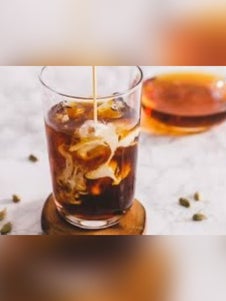 In a glass, combine the cold brew coffee, milk or cream, maple syrup, and ground cardamom.